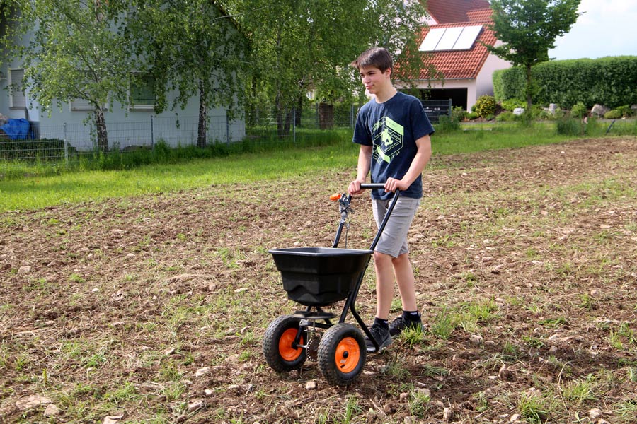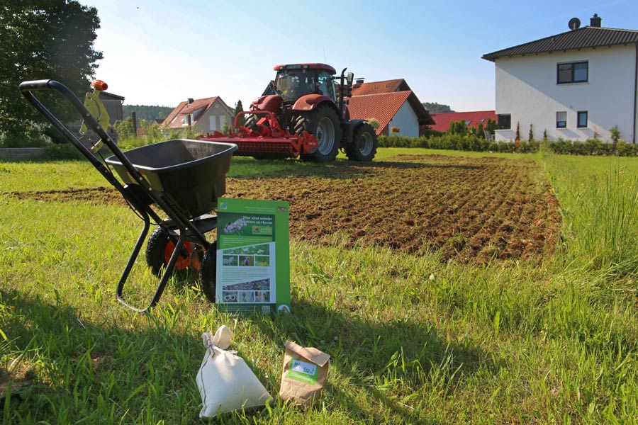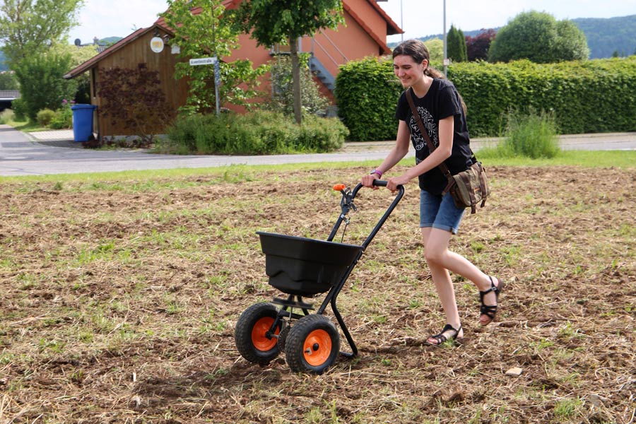 Zuerst mussten wir Lockdown-bedingt eine Aktionen-Pause einlegen, dann der ständige Regen ... Aber Anfang Juni hat es nun endlich geklappt und wir konnten wieder Saatgut auf Bauplätze säen. Weil wir unterschiedliches Saatgut je Bauplatz hatten, säten wir in diesem Jahr manuell. Herzlichen Dank an Lu Mertl, der uns dabei mit seinen landwirtschaftlichen Geräten unterstützte und ebenfalls ein herzlicher Dank an Simon Niebler, der die Bauplatz-Aktion vor zwei Jahren mit uns ins Leben rief.